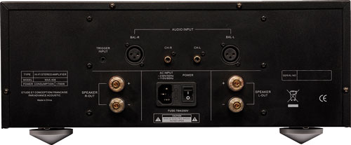 4 ohms, 10 Hz – 50 kHz, THD < 0,1%, 220 Watts por canal, 8 ohms, 10 Hz – 50 kHz, THD < 0,1%, 150 Watts por canal